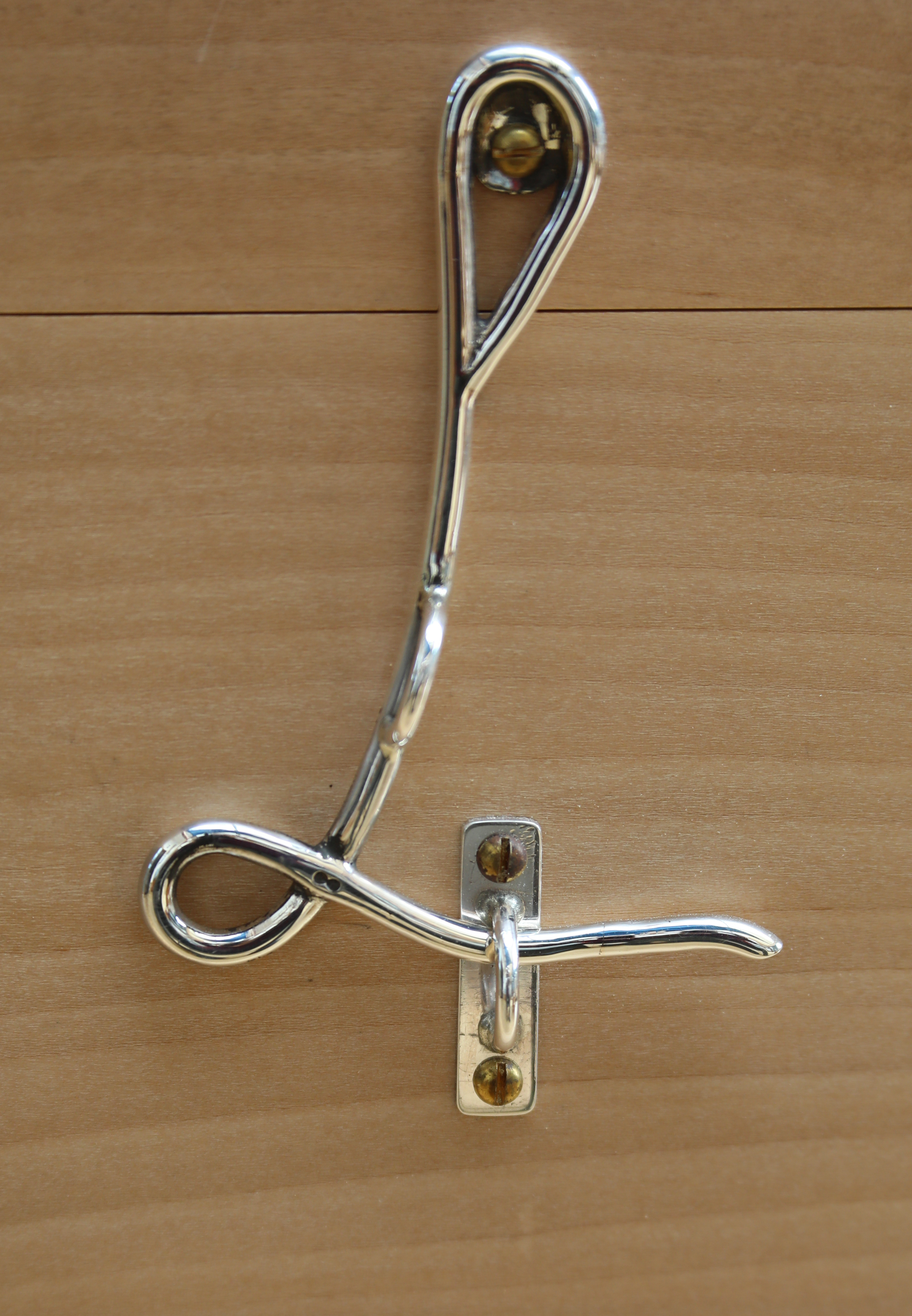 I asked her to write her initial and copied it in silver wire, soldering a small bump onto the horizontal stroke so that there is a slight resistance before the catch reaches its optimum closing position. I used a piece of scrap wood to test this fit, and when I was satisfied, measured the centres between the screw holes to reproduce the fit on the actual box. On the down stroke I soldered a semicircle of wire to make shifting the catch and lifting the lid easier