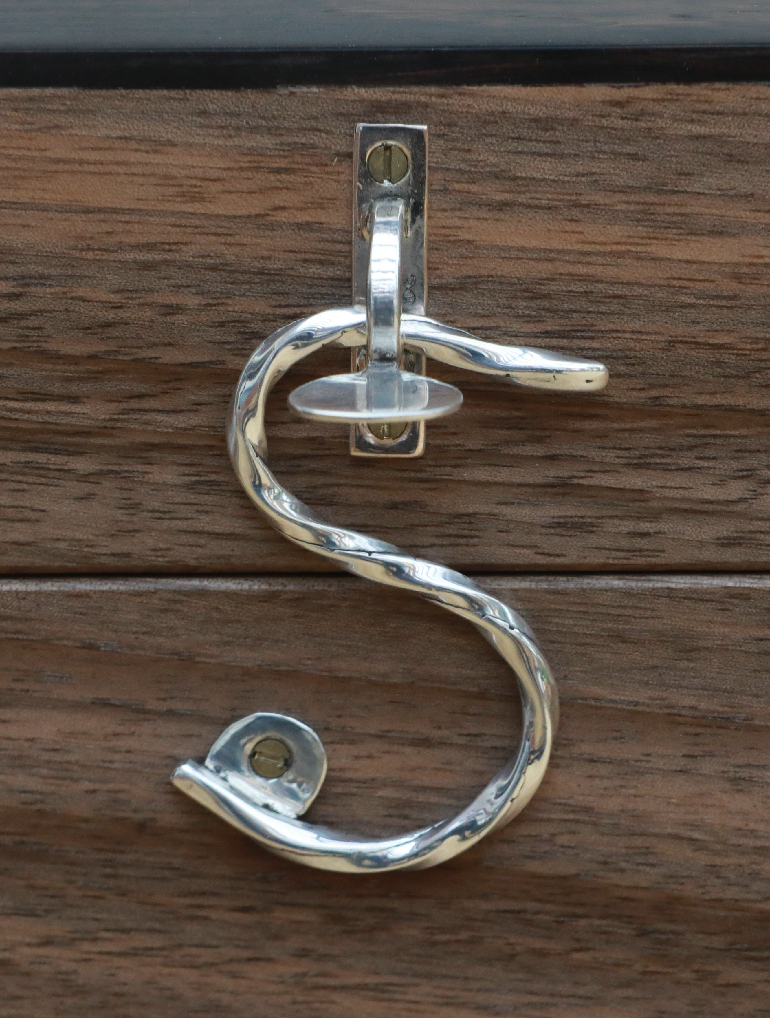 Made from recycled silver fed through a Durston rolling mill (thank you again Matthew), with a small fingerplate added to the eye to allow the lid to be lifted. S for silver. Or spoon