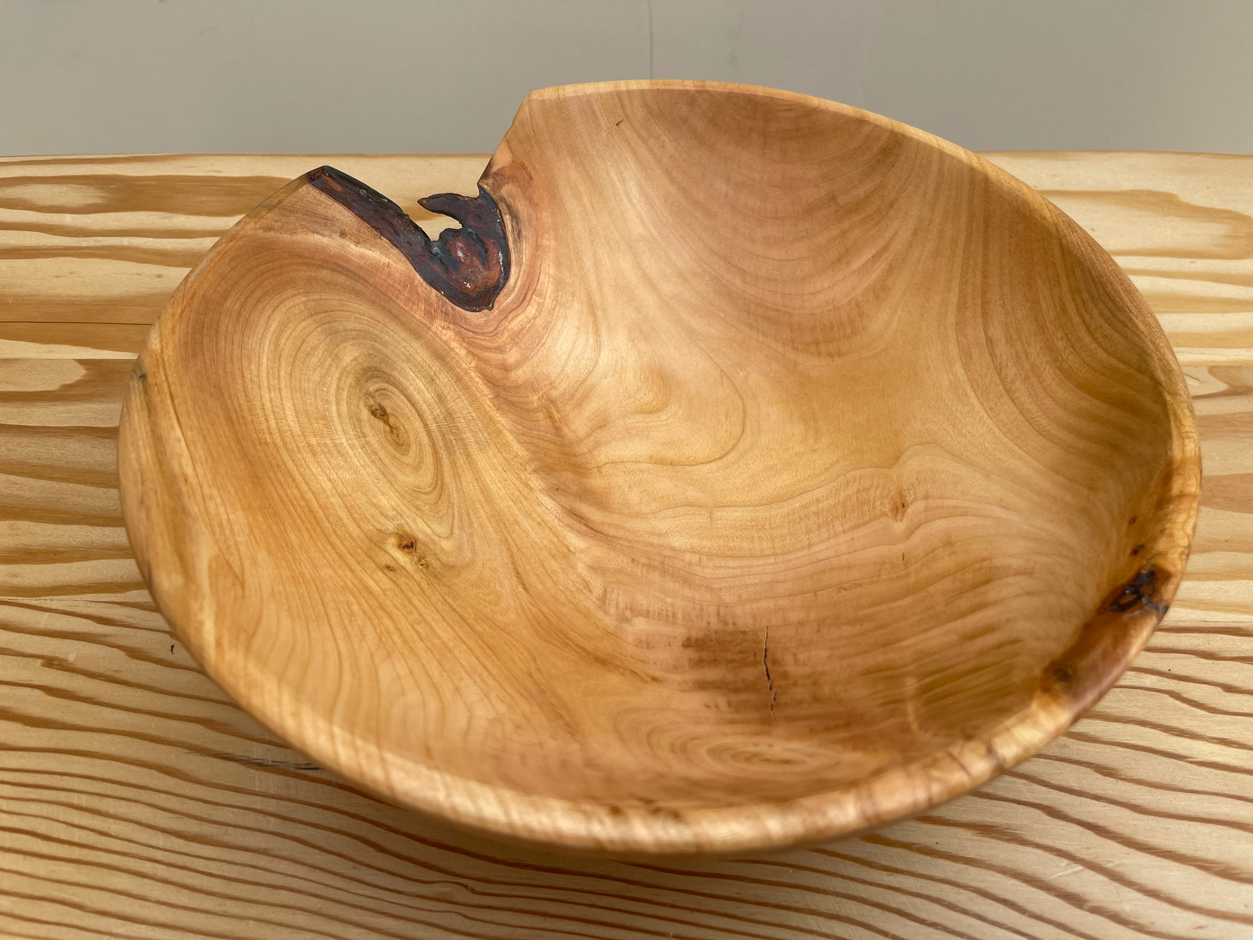 I used superglue to stabilise the inclusion, which I wanted to try to keep, and let the usable wood dictate the shape of the bowl