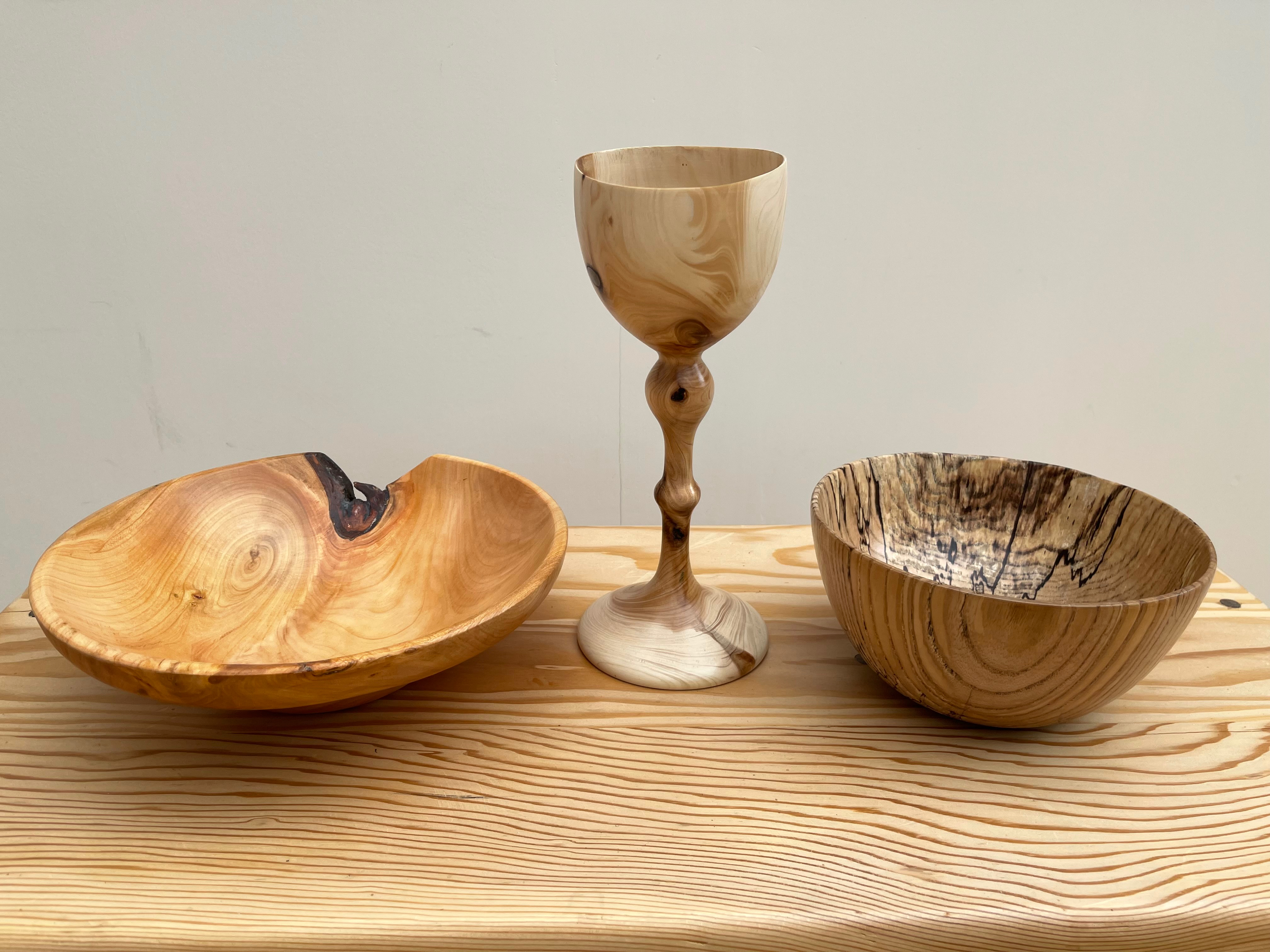 Cherry, pine, and ash; victims of an invasion of honey fungus in our front garden which killed three of the five trees in it, and turned it from a shaded woodland space into a much more open one, altering the whole character and feel of the place. There are no (legal) ways of eradicating honey fungus. You just have to plant trees and shrubs that are known to be less vulnerable to it. But it is sad to watch your plants die one by one. The latest victim is a twenty year old wisteria grown from seed, and this was preceded by a 35 year old kifsgate rose which had got right to the top of its 35 foot host, a Caucasian Wingnut which appears, fortunately to be immune to the fungus. I stamped the bottoms of all three pieces with the words 'Victim of honey fungus'. Stop Press: the wisteria is re-growing from the base; perhaps some plants are able to fight back. Stop Stop Press. It died again.