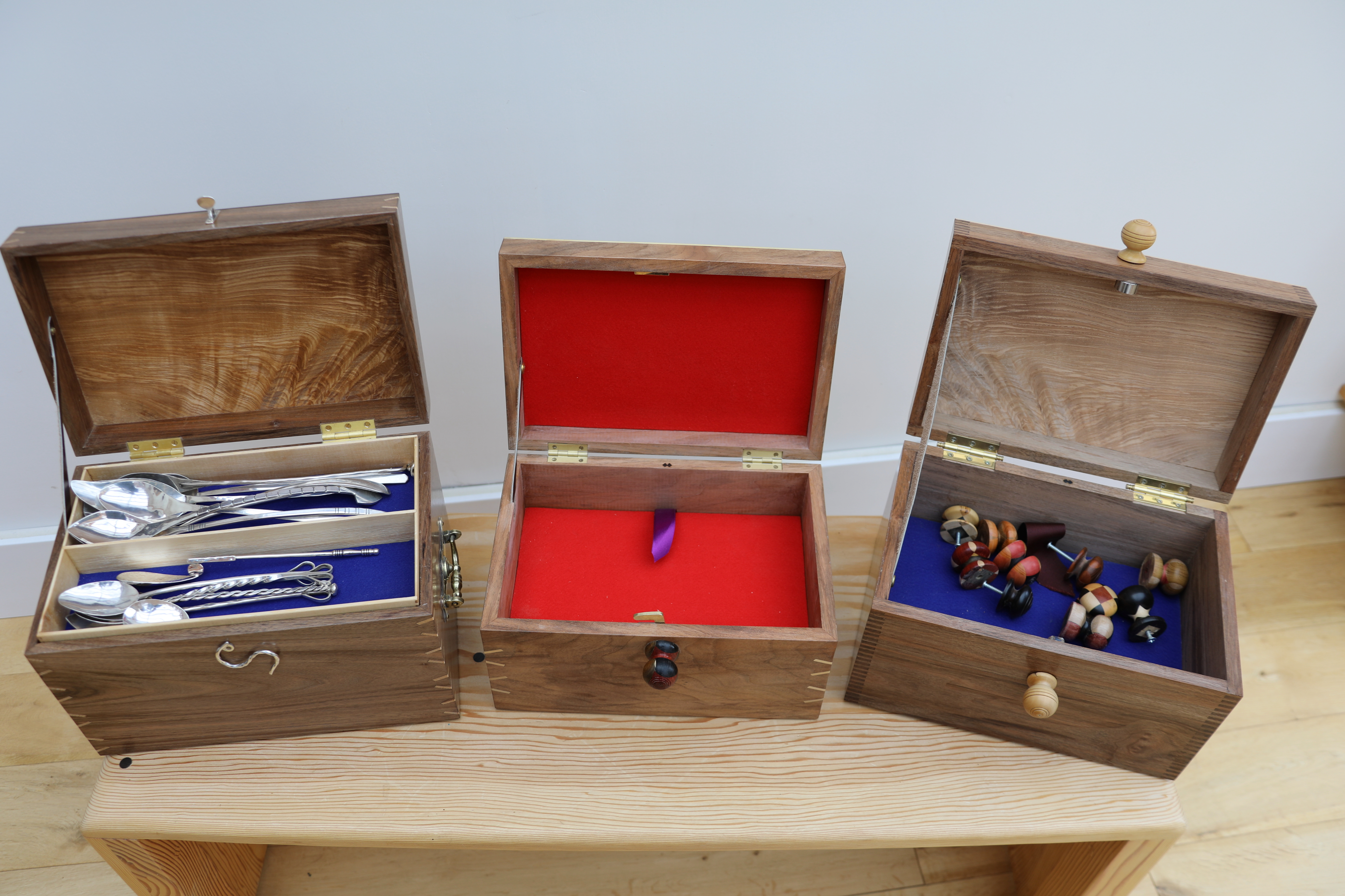 The knobs in the right-hand box, and on the front of the middle one, are all tangs cut from goblets and re-turned, in order not to waste the beautiful woods in them