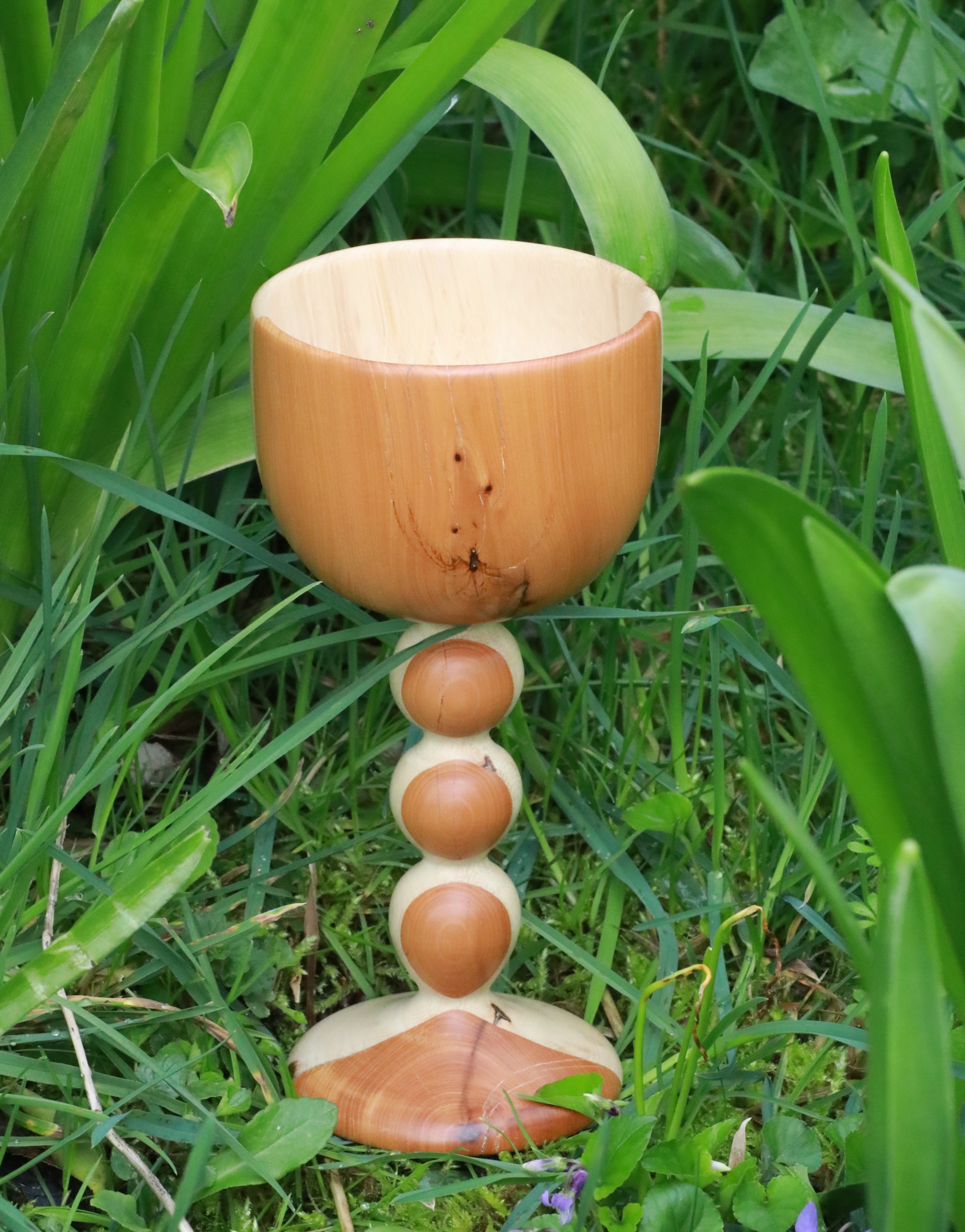 Description: Yew and box. He has just returned it to me for repair, under its(lifetime) guarantee, because it leeks through hairline cracks in the yew when he fills it with wine... I suggested he drink something fuller-bodied