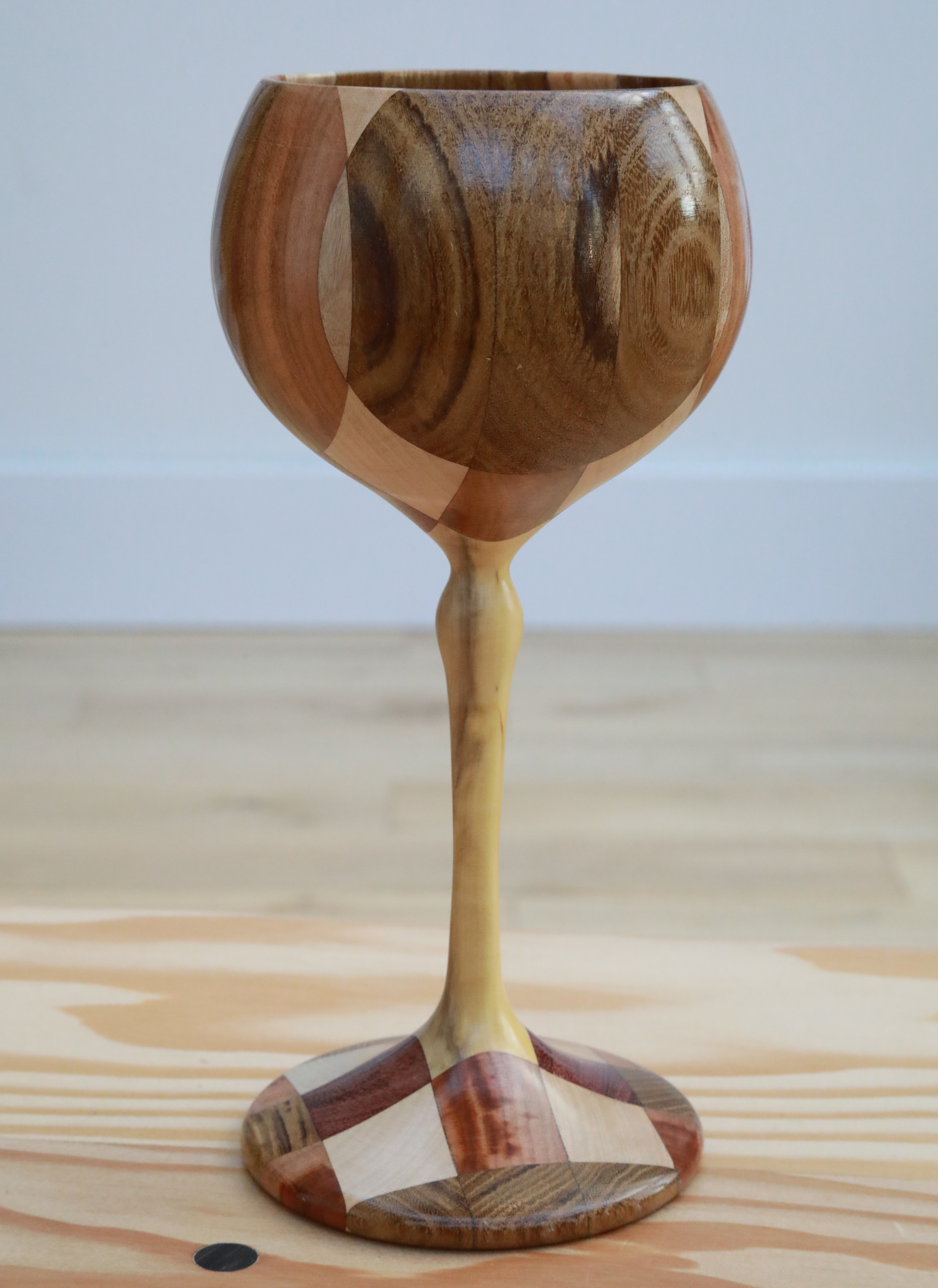 Description: Boxwood stem, laburnum, holly, damson, walnut, bloodwood. Kit is the exceptional architect who designed workshops number 2 and 3, and is now a painter. And with whom I spent many happy hours windsurfing off Daymer Bay