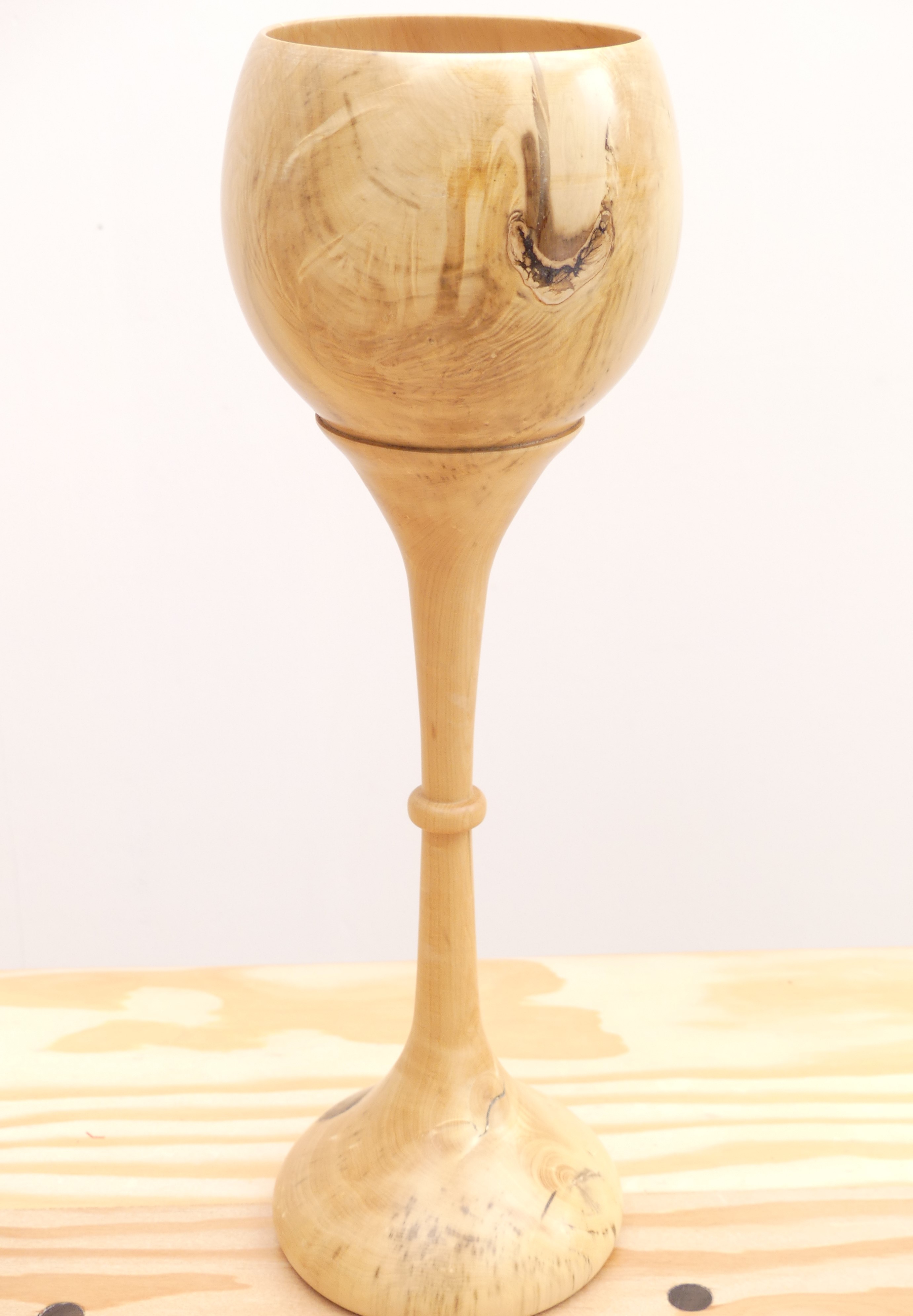 Made out of wood from his garden. I tried to make it look as if the bowl was sitting on the stem, rather than attached to it
