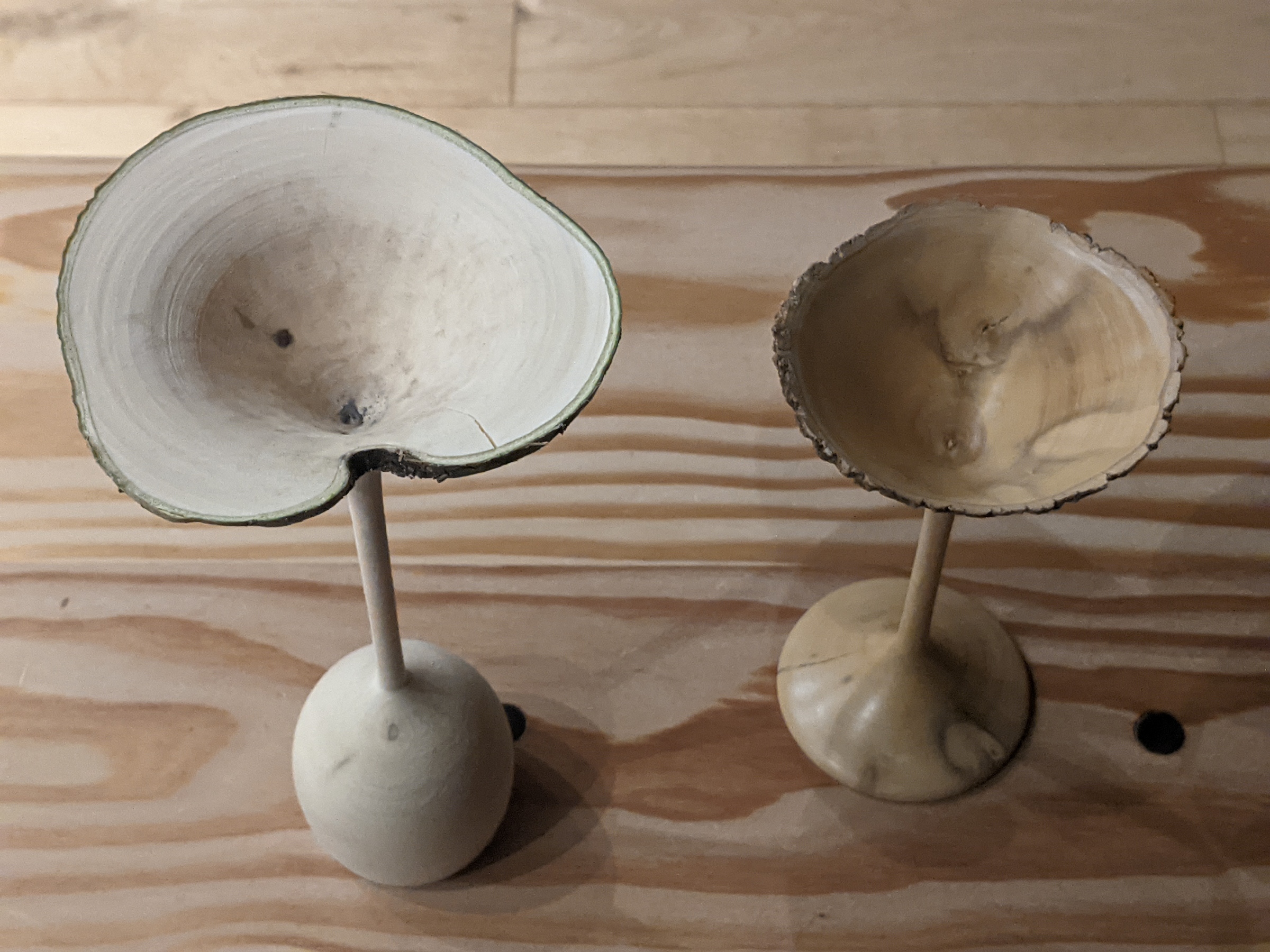 Description: Rough turned from very green holly, this one will crack up too. I made no attempt to sand or finish it because it was too green. I left a thin strip of bark on