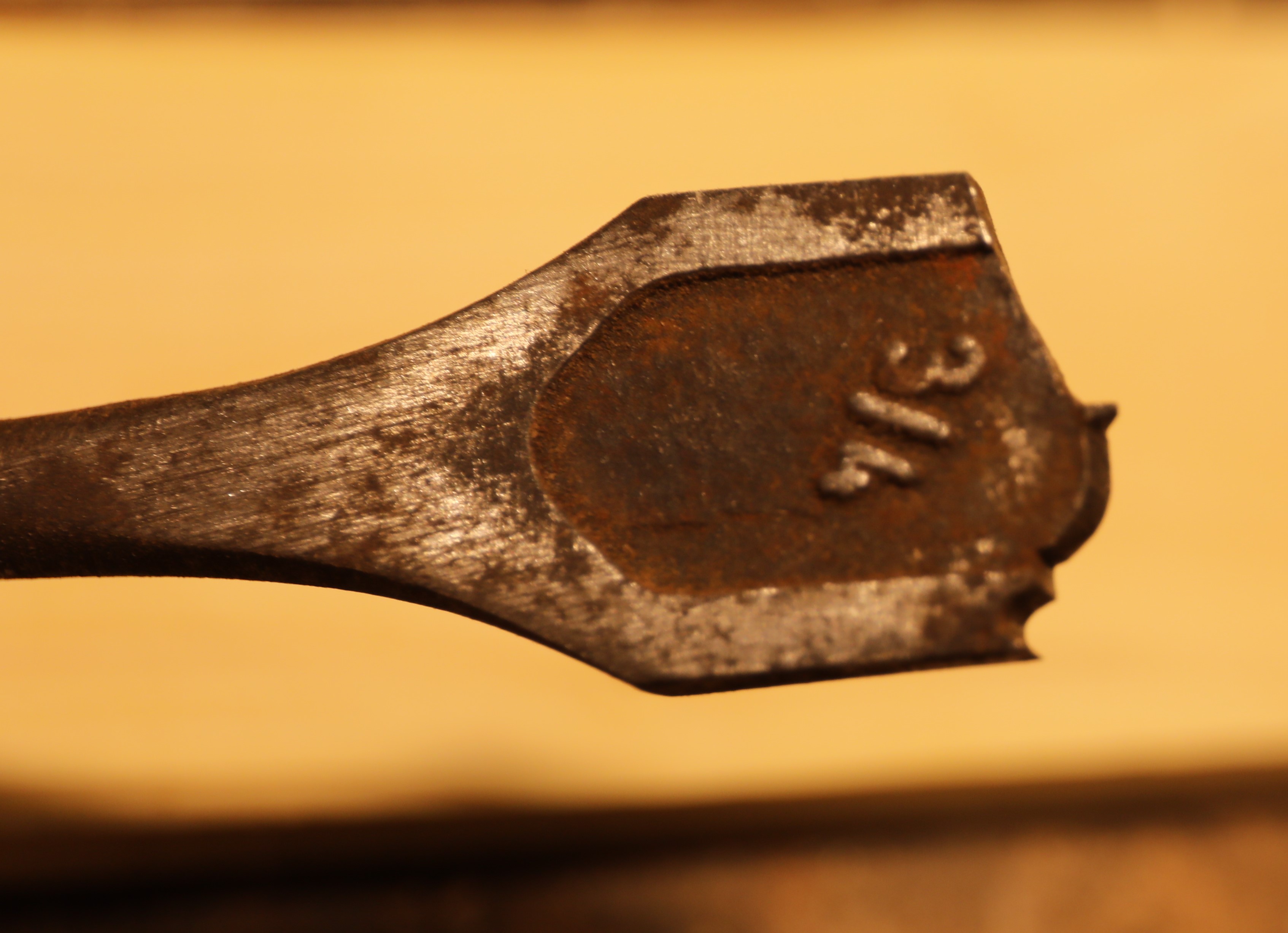 Description: Made by hand from an ordinary 3/4" spade bit, using a hacksaw and some needle files, it completes a moulded impression in the wood when used in a drill press. The wood strip is then cut in half to give two arcades per impression