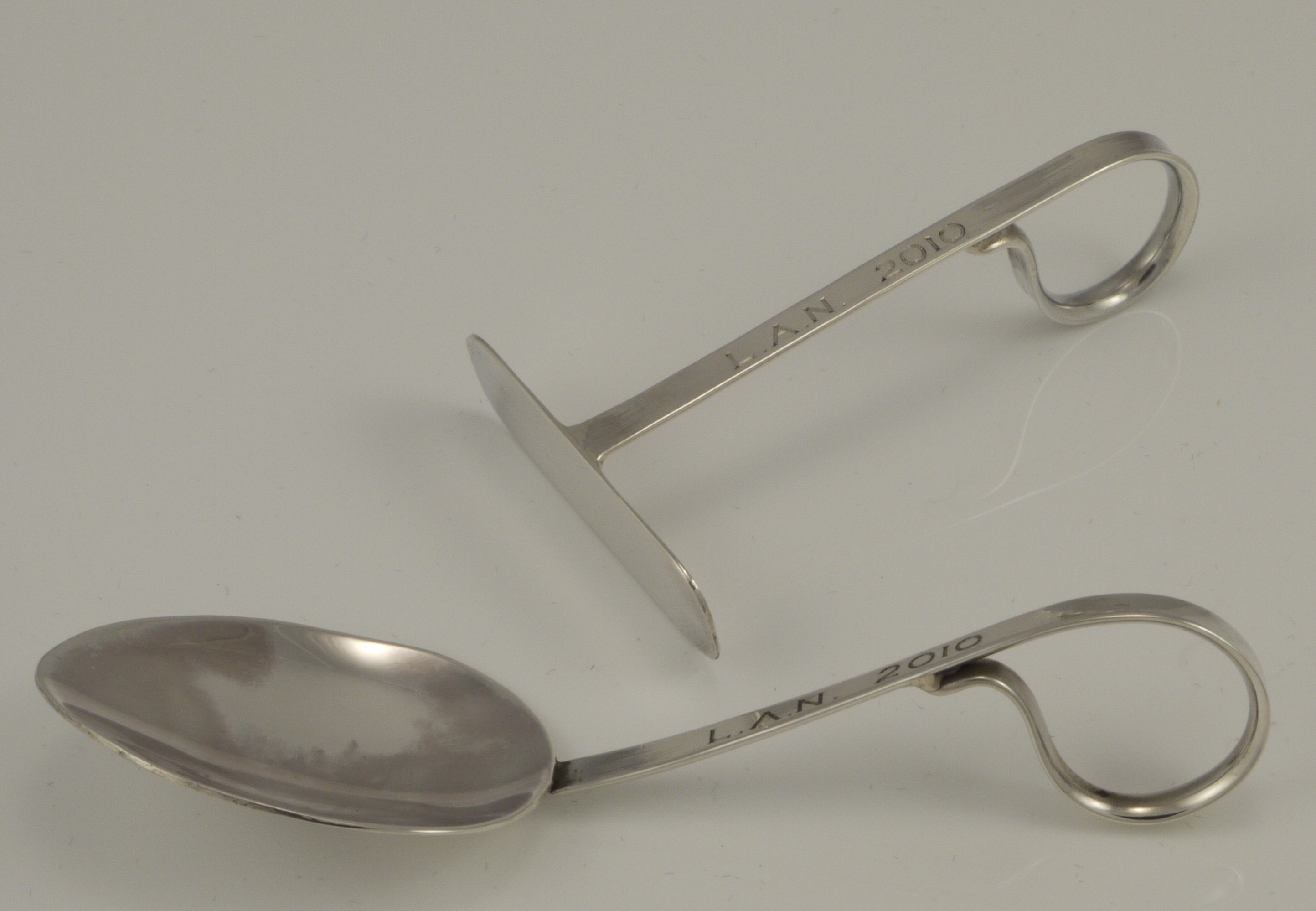 Traditional spoon & pusher for godson Matthew's daughter Lorelei. Engraving by Steve the Engrave